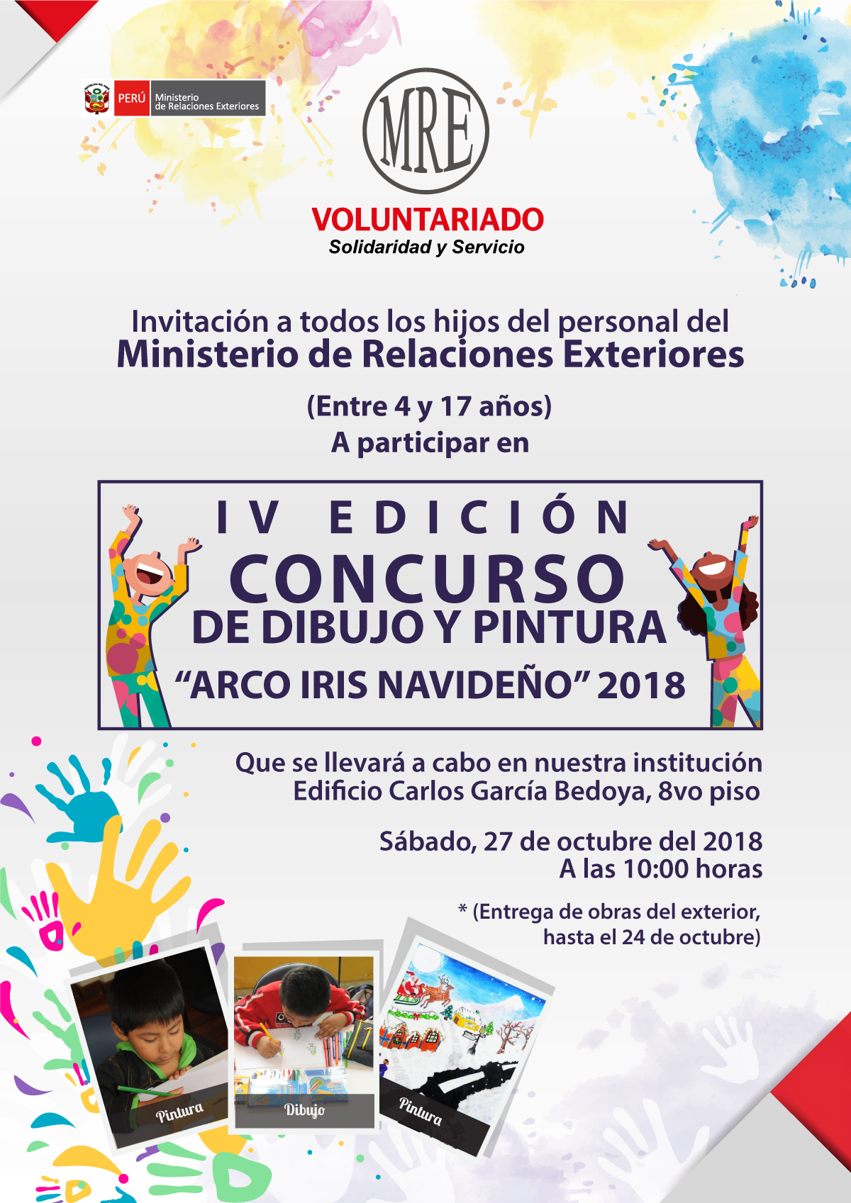 El 6 de diciembre del 2018 se llevó a cabo la premiación de la cuarta edición del concurso de dibujo “Arco iris navideño” en el segundo patio de Torre Tagle . Los primeros puestos de cada categoría recibieron tablets y relojes . La muestra fue expuesta en el Centro Cultural Inca Garcilaso del 10 de diciembre al 10 de enero del 2019.