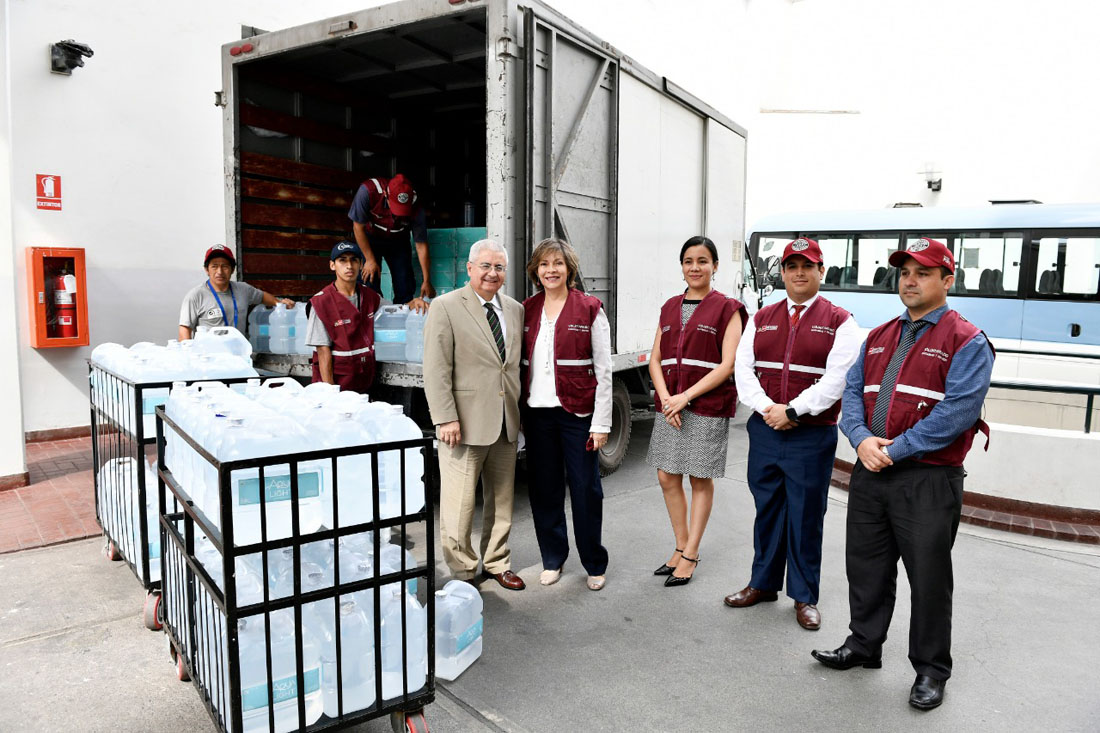 A fin de apoyar a los damnificados de los huicos producidos por las torrenciales lluvias en Mirave, Tacna el pasado 8 de abril del 2019 el Voluntariado de MRE hizo entrega de 2000 litros de agua donados por la Iglesia Evangelica Camino de Vida.
