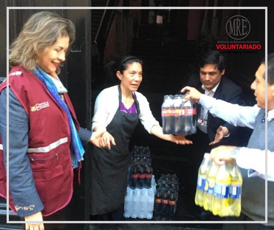 El 8 de noviembre del 2019 el Voluntariado del MRE, comprometido con ayudar a personas necesitadas, hizo entrega de ropa, medicinas, bebidas gaseosas y agua embotellada a las hermanas de L’Eau Vive quienes a diario dan alimentos y prestan ayuda en el centro de Lima a personas de escasos recursos económicos.